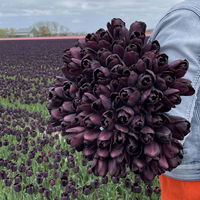 Глибокий, майже чорний відтінок пелюсток із фіолетовим блиском виглядає розкішно як у саду, так і в букетах. Це справжня “чорна перлина” серед тюльпанів.