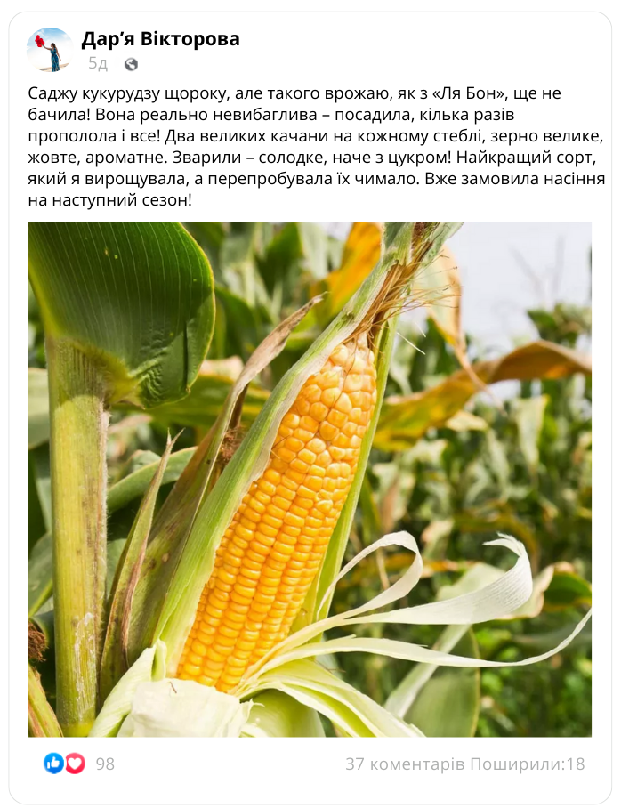 Суперсолодка кукурудза «Ля Бон»: вражає розміром та смаком!