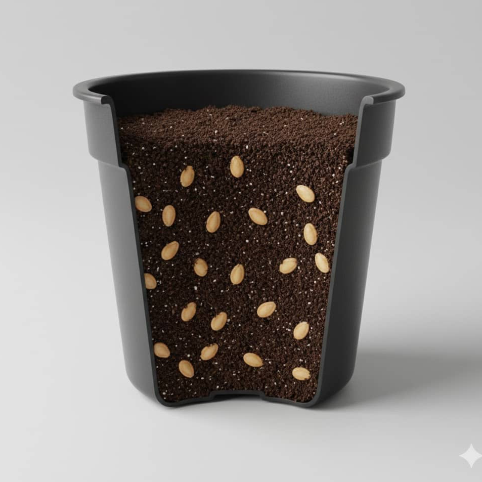 🌱 Готовий старт без помилок — 10 насінин уже висіяні в підживлений ґрунт у горщику P9. Нічого пророщувати чи вгадувати не потрібно.